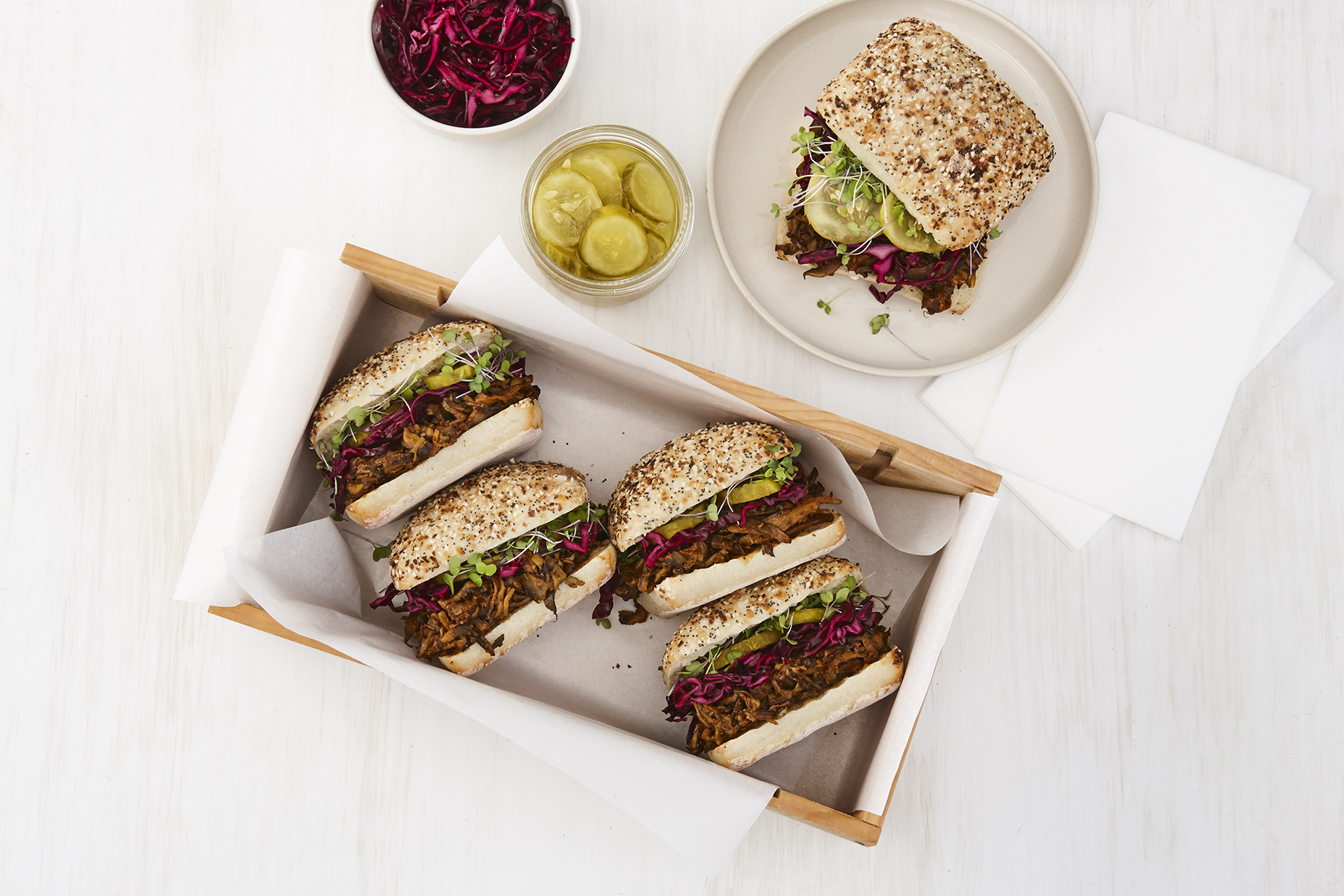 - Spoon a few tablespoons of the remoulade on top of the trout and finish with a pinch of the arugula or sprouts and the top half of the bun.