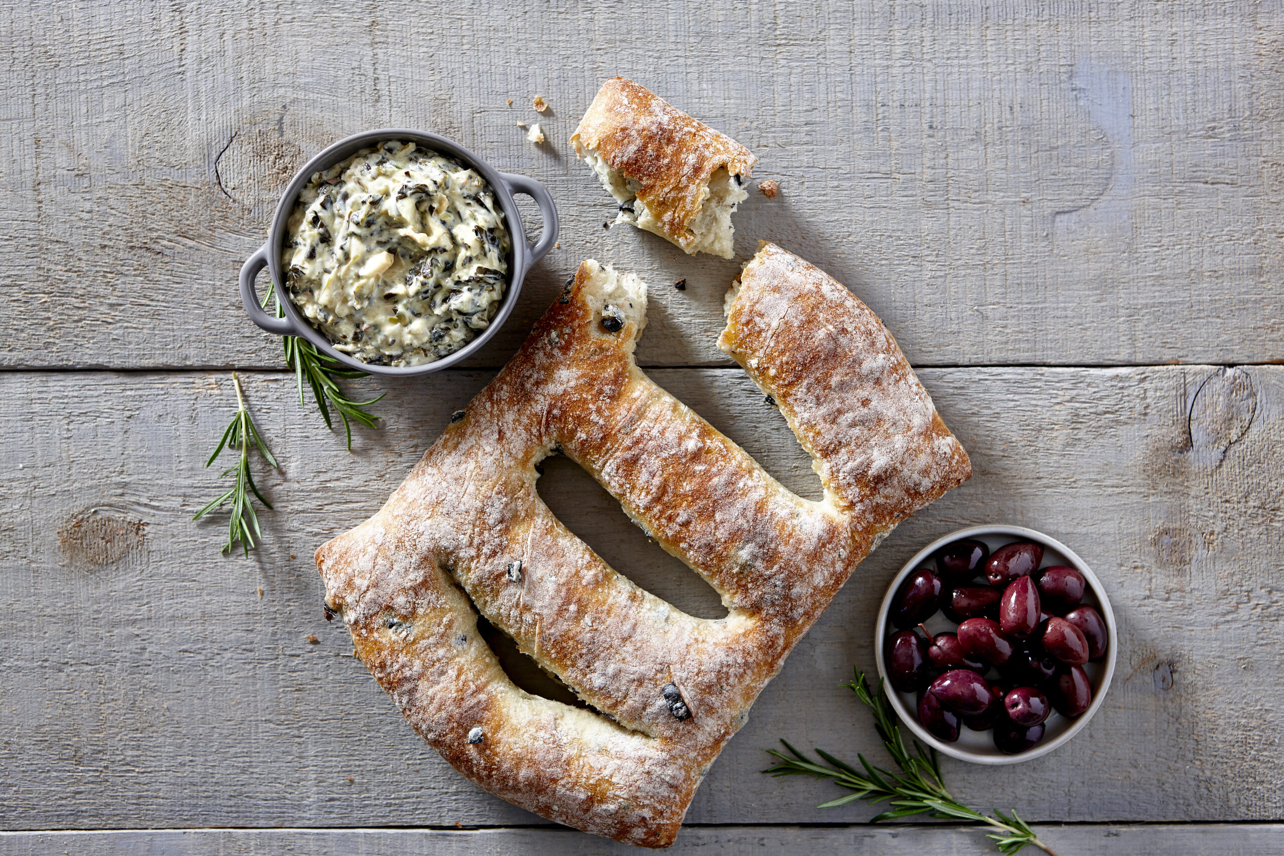 Juste prononcer le mot fougasse met l’eau à la bouche. Nous la faisons avec de la farine de blé enrichie non blanchie et non traitée, de l’eau, des olives Kalamata, des olives noires, du sel de mer, de la levure, des fines herbes et de l’orge malté. Vous en resterez bouche bée dès la première bouchée.