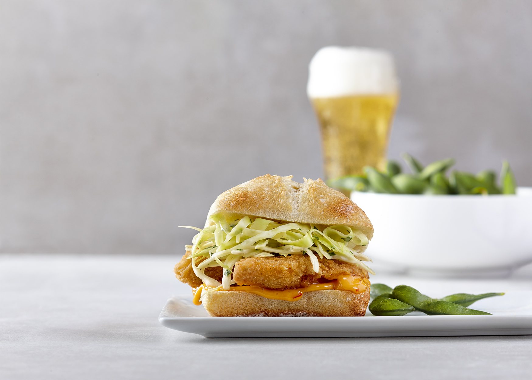 8. Pour assembler le sandwich, déposer les asperges sur la moitié inférieure des petits pains, suivi du bacon et de l’œuf poché. Verser un peu de sauce hollandaise et mettre une pincée de ciboulette et de poivre noir. Refermer les sandwichs et déguster !